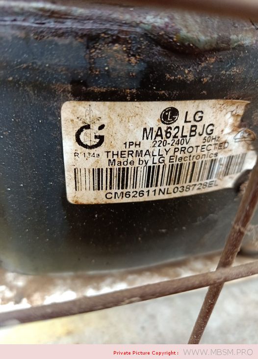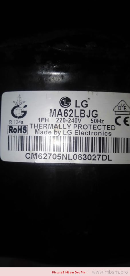 LG air compressor for refrigerators MA62LAEP uses voltage 220V (220V mini air compressor ), at 50Hz, 180W (174W)-cooling capacity using motor Lg kx62laeg refrigerator compressor