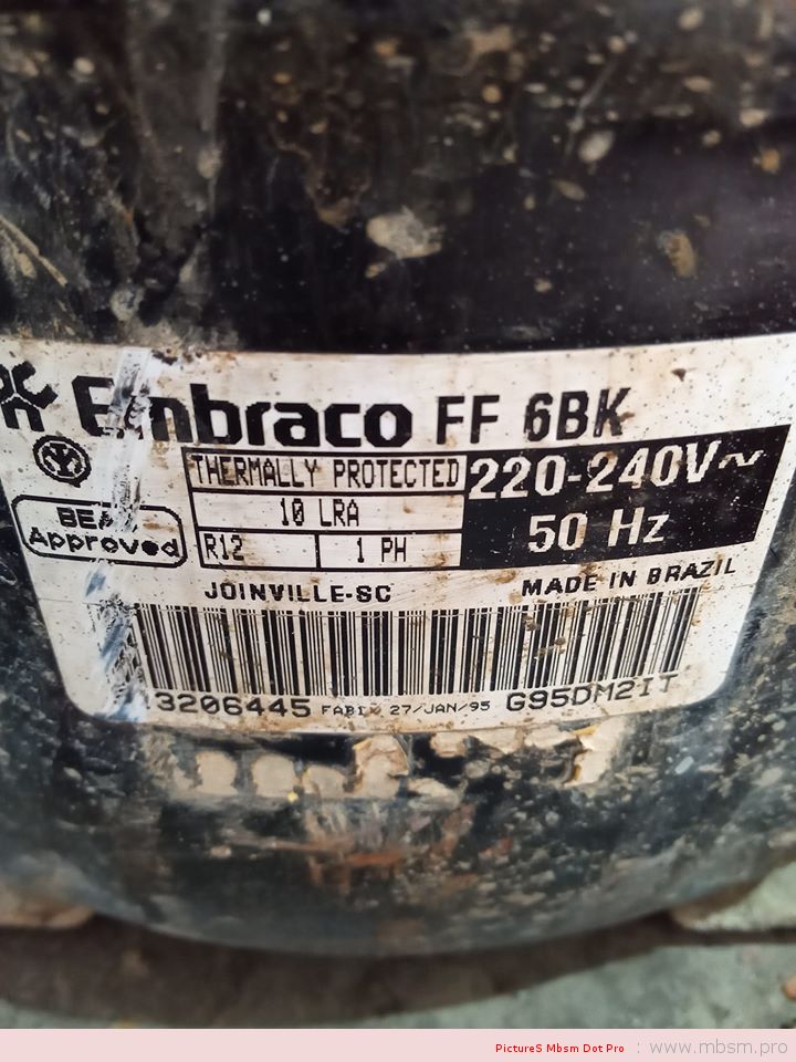 COMPRESSOR , EMBRACO , FF6BK , 1/5 HP, 115V , R12 , LBP , 635 BTU , Manufactured by ,Tecumseh