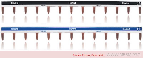Plus souvent, il faut utiliser deux peignes (un pour la phase, l’autre pour le neutre) constitué d’une rangées de “dents” pour les connexions électriques. Le peigne pour le neutre est dans ce cas bleu, (c’est le code couleur en électricité pour le neutre) celui pour la phase est noir dans la plupart des cas.