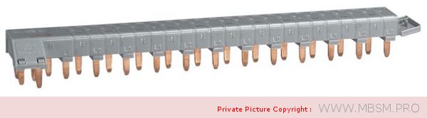 Les dents des peignes pour les phases sont espacées, de façon à distribuer la phase équitablement sur toute la rangée du tableau électrique, avec une rangée pour le neutre.