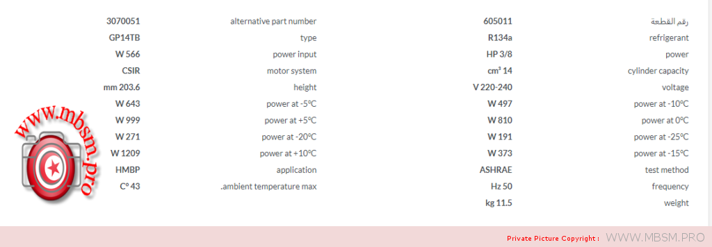 - Capacidad Frigorífica 5°C: 1193 Kcal/h
