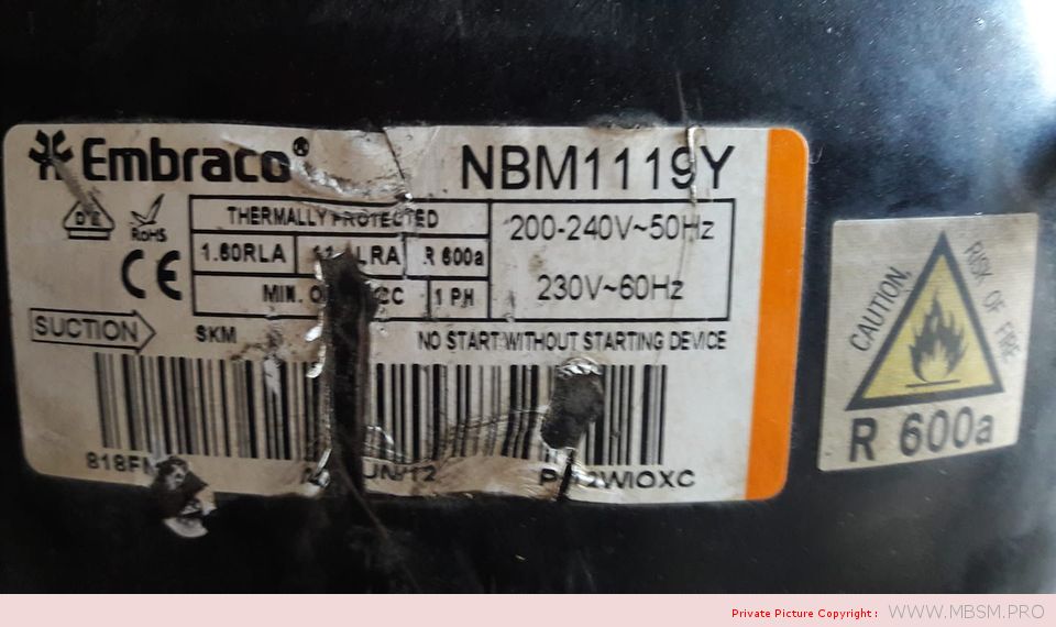 Mbsm.pro, Compressor, EMBRACO, NBM1119Y, Indesit, Ariston, ASPERA, R600, 1/3 HP, 237W, LBP