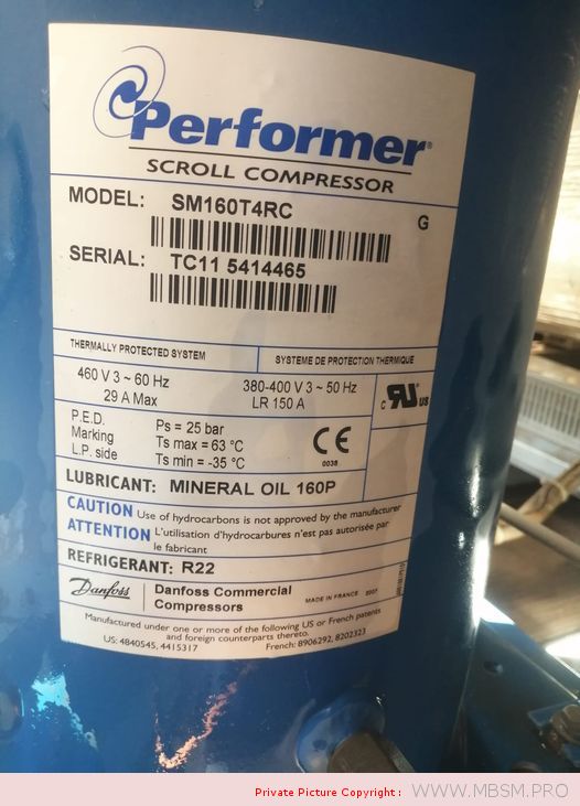 | Compressor power supply [V/Ph/Hz] | 400/3/50 460/3/60 |