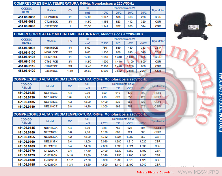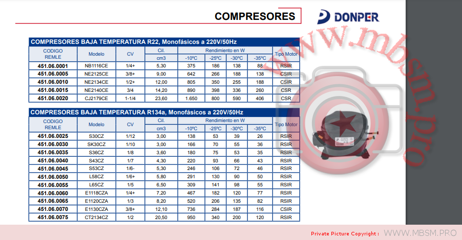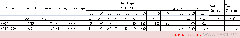 | R134A | LBP | S | S30CZ | 1/12 | 3.0 | S | RSIR | 220V/50HZ |