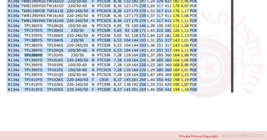 | TPA1390YKS (TP1390YS) | Piston | LBP – Low Back Pressure | R-134a | 220-240V ~ 50Hz | N/A |