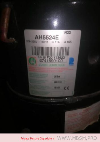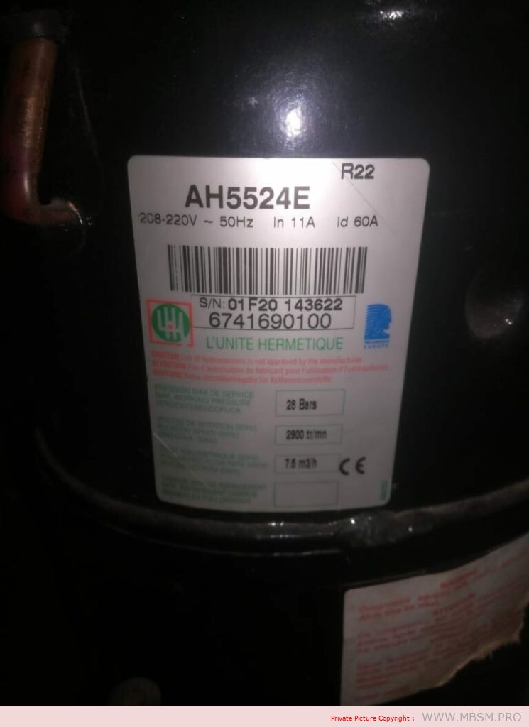 Mbsm.pro, Compressor, Tecumseh, AH141FT-014, R22, AH5524E, 2HP, 2Ton, 24200 Btu