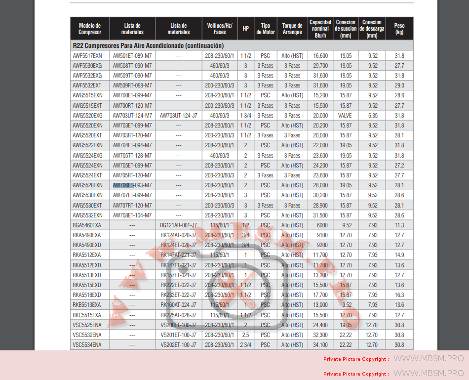 Mbsm.pro, Compressor, Tecumseh, AW704ET-094-A4, AWG5522EXN, 2 HP, RECIPROCATING Compressor, 200-208-220-230/60-50/1, R-22, 28000 btu/h