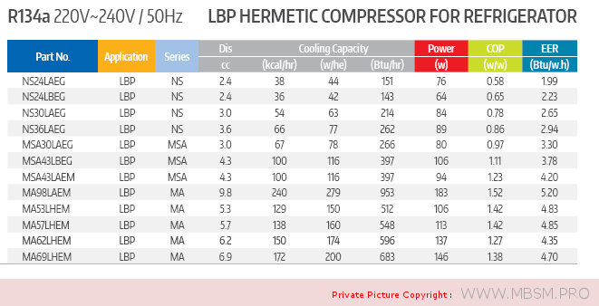 Mbsm.pro, PDF, Compressor, EGM35AF, 1/10 HP, ZMC, R134A, LNB