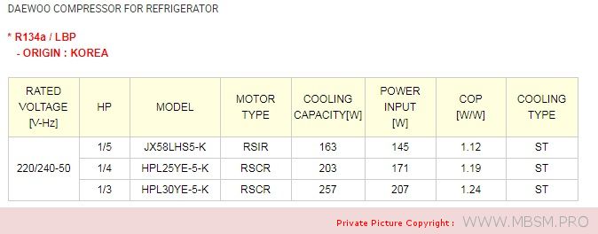 | Model | Cooling Capacity | Efficiency | Motor Type | Cooling Type | NetWeight [kg] | OilQty. [cc] | ||||