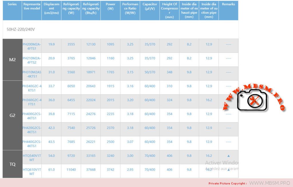| GMCC Compressor 220/240V 50Hz | ||||||