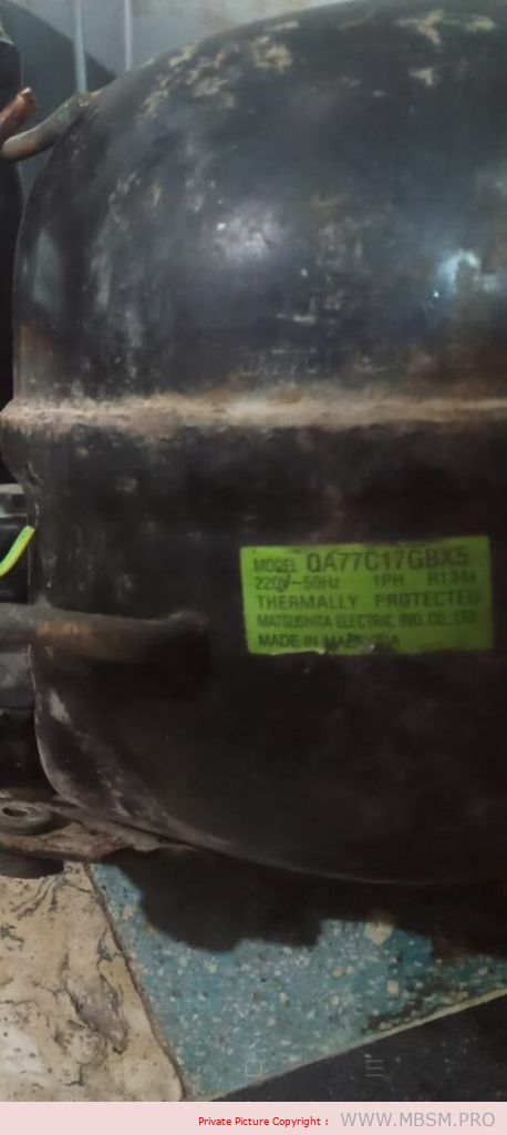 Panasonic rotary compressors in general, their compact design, and light weight for greater AC productivity. The compressor is part of the Q Series and has a 1/4 hp capacity. It is designed for low back pressure applications and uses R134a refrigerant with an evaporator temperature range of -35°C to -5°C.