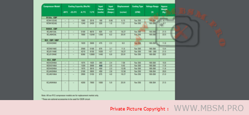 | Condensing Temp. | -30ºC | -25ºC | -20ºC | -15ºC | -10ºC | -5ºC | 0ºC | +5ºC | |