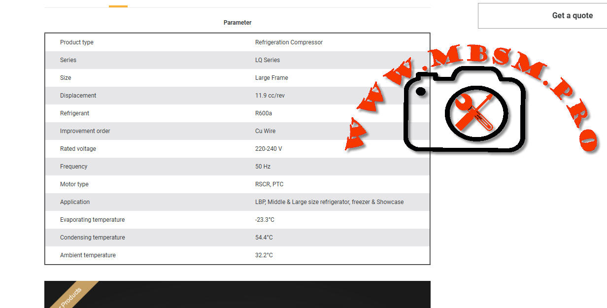 Mbsm.pro, Compressor, THK2390YJE, LBP, 1/3 hp, R134a, Freezing, Tecumseh Compressor