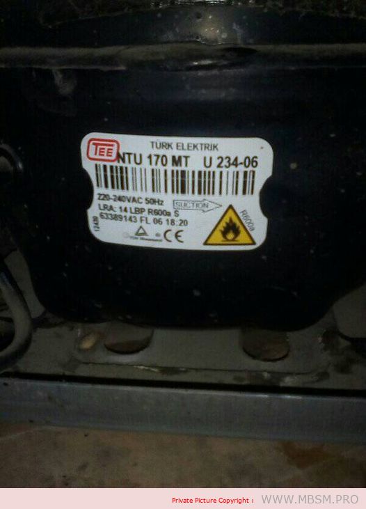 Mbsm.pro, Compressor, TEE, NTU150MT, R600a, 150 kcal * 1.163 = 174 w, 10 W lara, 1/5 hp