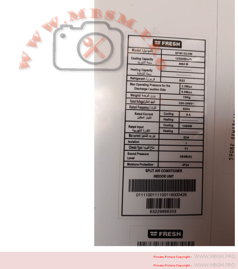 Mbsm.pro, SFW13C/IW, Air conditioner, Fresh, 12500 btu/h, Cooling, heating, 3664 w, r22, t1 ,1.5 hp, 1 Ton