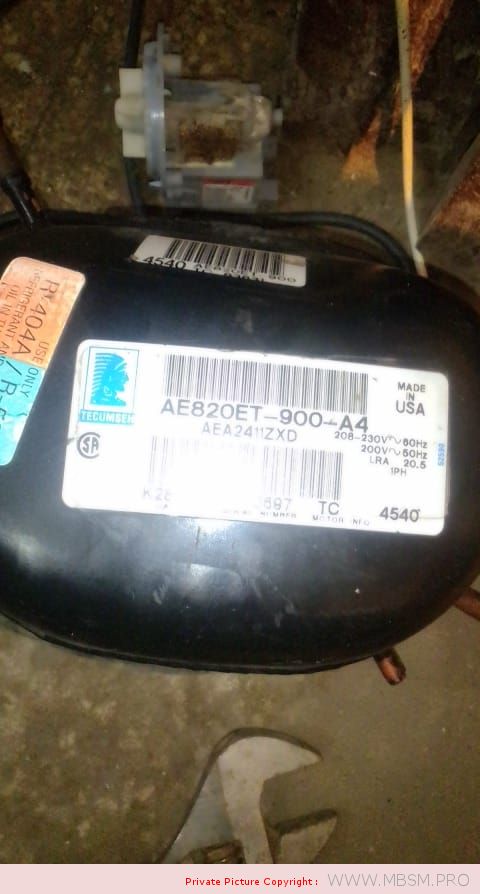 Mbsm.pro, Compressor, AE820et-900-a4, AEA2411ZXD, Tecumseh, 1/3 HP, 115V, 1600 BTU, R404A, Hermetic, AE2 Compressor, lbp