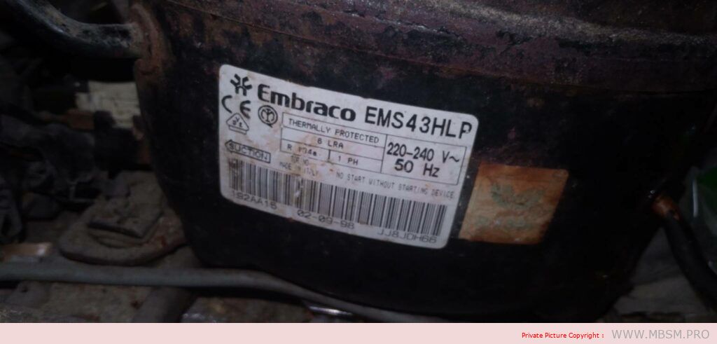 Mbsm.pro, Compressor, Embraco, Aspera, EMT43HLP, EMY3111Z, LBP-R134a, R507, 220-240V/1/50Hz, 1/8and HP, displacement 4.85 cm3, motor type RSIR