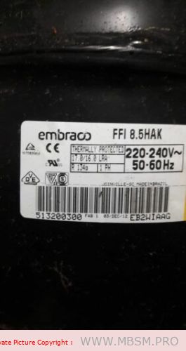 Mbsm.pro, Compressor, Embraco, FFI 8.5HAK, 1/4 hp++, 1/3 hp–, hbp, r134a, 220 v