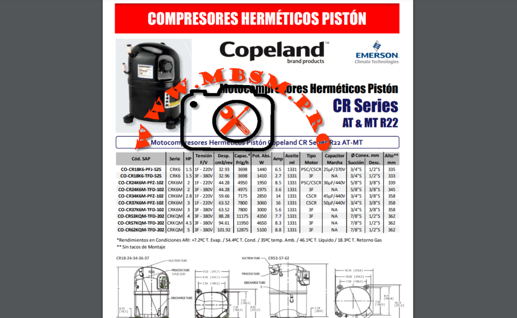 Mbsm.pro , Compressor, CR62KQM-TFD-202, Copeland, Hermetic, 5 hp, 3ph