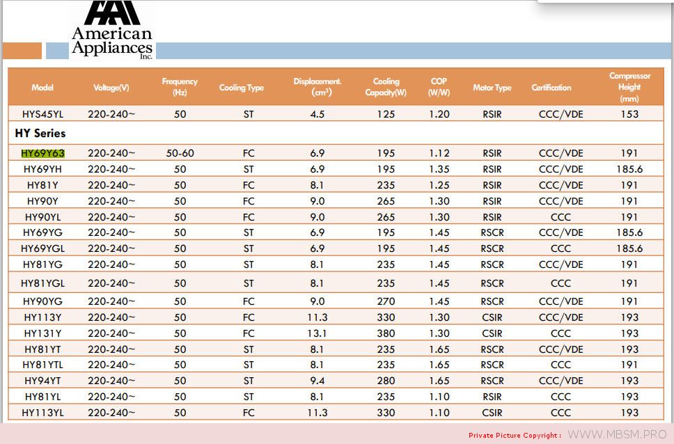 Congélateur, glacière, 180 à 280 litres, Compresseur LG MA57, 130 W, 1/6Hp, LBP, R134, 220-240V