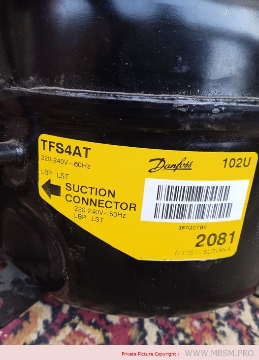 – refrigerator compressor capacity 1/3 pk brand Tecumseh type THK 2390 freon R 134a.