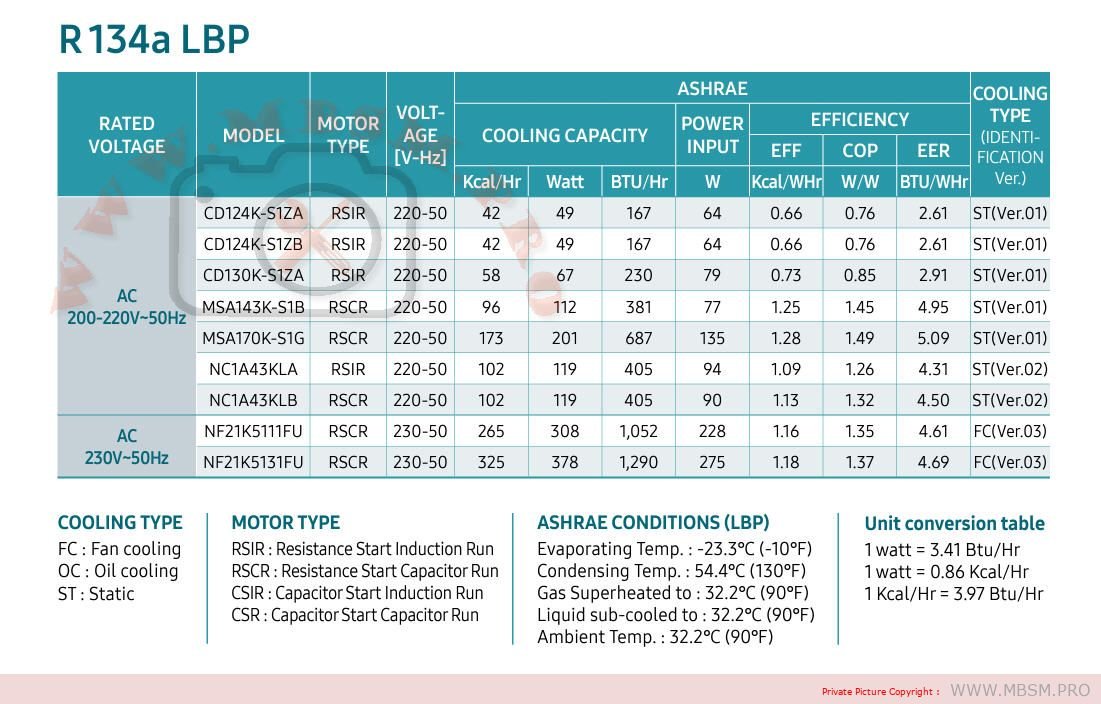 Freon type R 134a. – refrigerator compressor capacity 1/10 pk National brand type QB 43 freon R 134a. – refrigerator compressor capacity 1/8 pk National brand type QB 57 freon R 134a. – refrigerator compressor capacity 1/6 pk National brand type QB 66 freon R 134a. – refrigerator compressor capacity 1/5 pk National brand type QB 77 freon R 134a. – refrigerator compressor capacity 1/4 pk National brand type QB 91 freon R 134a. – refrigerator compressor capacity 1/10 pk Handen brand type ADW 43 freon R 134a. – refrigerator compressor capacity 1/8 pk brand Handen type ADW 51 freon R 134a. – refrigerator compressor capacity 1/6 pk brand Handen type ADW 66 freon R 134a. – refrigerator compressor capacity 1/5 pk brand Handen type ADW 77 freon R 134a. – 1/4 pk capacity refrigerator compressor, Handen brand type ADW 91 freon R 134a. – 1/3 pk capacity refrigerator compressor, Handen brand type ADW 110 freon R 134a. – 1/2 pk capacity refrigerator compressor, Handen brand type ADW 142 freon R 134a. – refrigerator compressor capacity 1/10 pk brand Panasonic type QB 43 freon R 134a. – refrigerator compressor capacity 1/8 pk brand Panasonic type QB 57 freon R 134a. – 1/6 pk capacity refrigerator compressor, Panasonic brand type QB 66 freon R 134a. – refrigerator compressor capacity 1/5 pk brand Panasonic type QB 77 freon R 134a. – 1/4 pk capacity refrigerator compressor, Panasonic brand type QB 91 freon R 134a. – refrigerator compressor capacity 1/10 pk brand Tecumseh type THK 1330 Y freon R 134a. – refrigerator compressor capacity 1/8 pk brand Tecumseh type THK 1340 freon R 134a. – refrigerator compressor capacity 1/6 pk brand Tecumseh type THK 1351 freon R 134a. – refrigerator compressor capacity 1/5 pk brand Tecumseh type THK 1365 freon R 134a. – refrigerator compressor capacity 1/4 pk brand Tecumseh type THK 1374 freon R 134a. – refrigerator compressor capacity 1/3 pk brand Tecumseh type THK 2390 freon R 134a. – refrigerator compressor capacity 1/10 pk brand Sikeland type ADW 43 – CU. freon R 134a. – refrigerator compressor capacity 1/8 pk brand Sikeland type ADW 57 – CU. freon R 134a. – refrigerator compressor capacity 1/6 pk brand Sikeland type ADW 66 – CUMK. freon R 134a. – refrigerator compressor capacity 1/5 pk brand Sikeland type ADW 77 – CUMK freon R 134a. – refrigerator compressor capacity 1/4 pk brand Sikeland type ADW 91 – CUWQ. freon R 134a. – refrigerator compressor capacity 1/3 pk Sikeland brand type ADW 110 – CUWKQ freon R 134a. – refrigerator compressor capacity 1/2 pk brand Sikeland type ADW 153 – CUWQ. freon R 134a. – refrigerator compressor capacity 1/10 pk Sanyo brand type BZN 90 L6Z. freon R 134a. – refrigerator compressor capacity 1/8 pk Sanyo brand type BZN 110 L6Z freon R 134a. – refrigerator compressor capacity 1/6 pk Sanyo brand type BZN 120 L6Z freon R 134a. – refrigerator compressor capacity 1/5 pk Sanyo brand type BZN 141 L6Z freon R 134a. – refrigerator compressor capacity 1/4 pk Sanyo brand type BZN 178 L6Z freon R 134a. – refrigerator compressor capacity 1/3 pk Sanyo brand type BZN 200 L6Z freon R 134a.