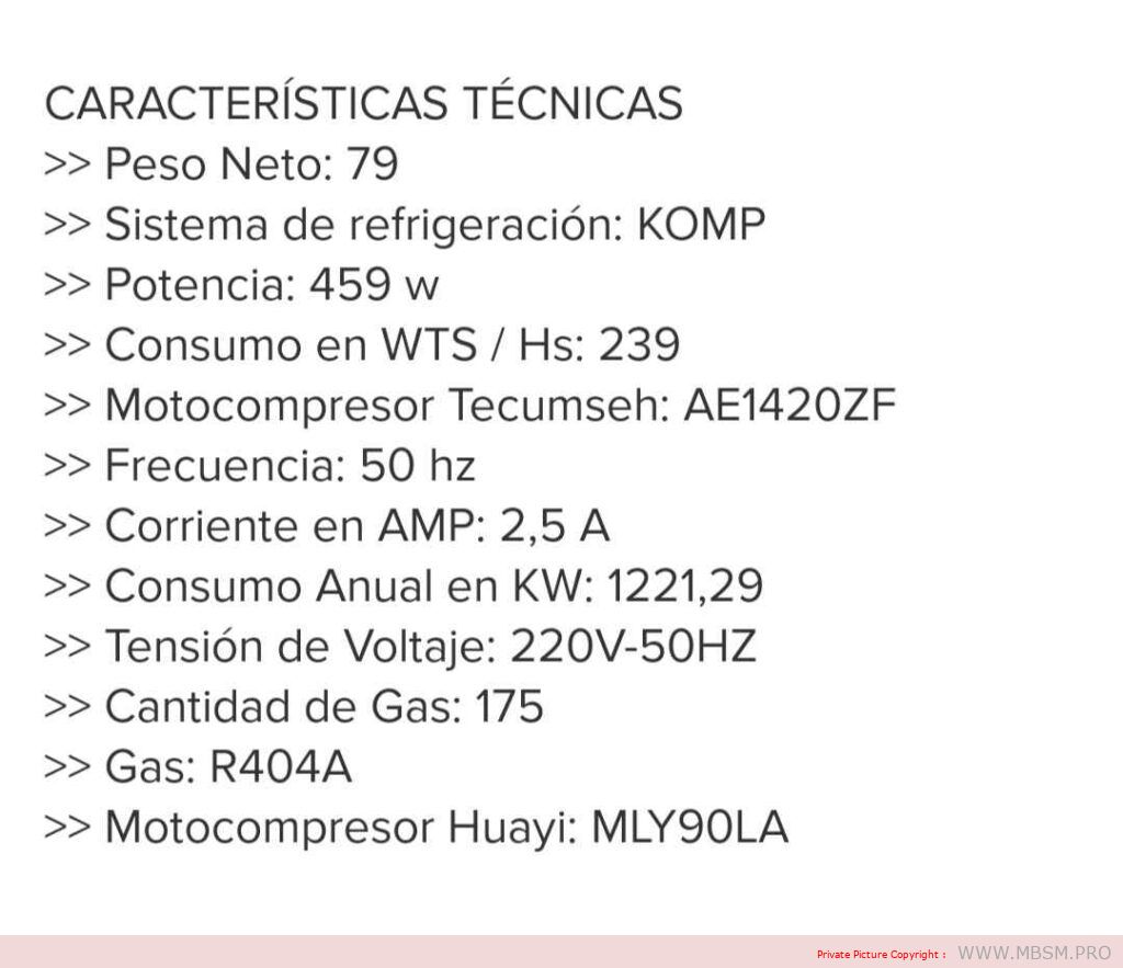 - Cooling Cap. -20°C: 470 Kcal/h