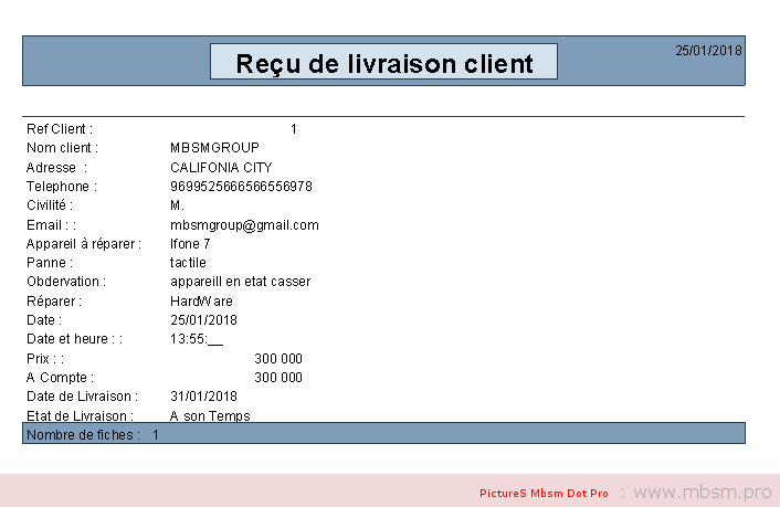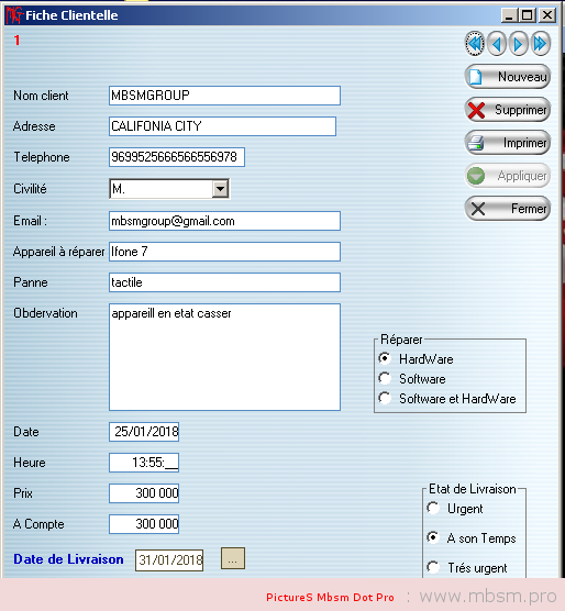 Programmation , Gestion de client et réparation , gestion de donnée et impression , www.mbsm.pro