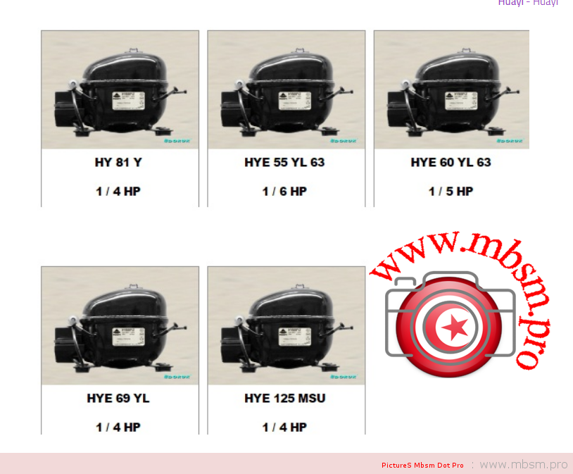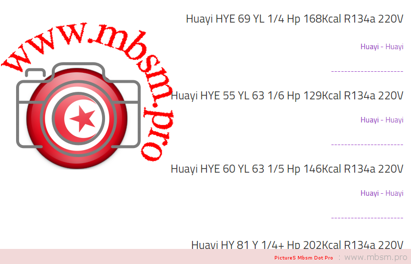 MBSM.PRO , HYE69YL ,Compressor (LBP) , China R134a ,Huayi Compressor Co., Ltd, 69 YL ,1/4 Hp ,168Kcal , 220V