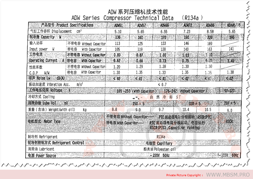 Mbsm.pro , China ,Freezer Compressor, for Small Refrigerator, Mk Series-Adw66, R134A Gas, 220V, 1/4-HP , 220V, Lbp, Rsir , cooling capacity 165W