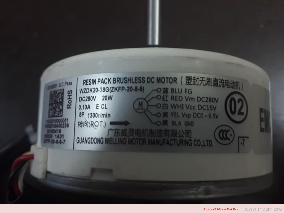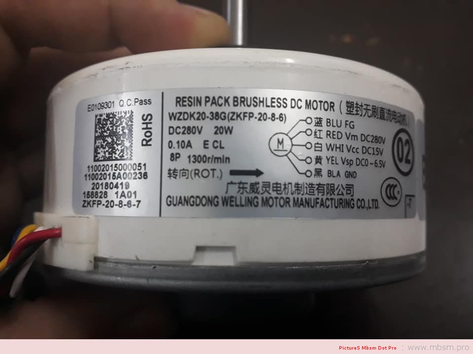Resin Pack ,Brushless ,Dc motor , Gangdomg ,Welling Motor Manufacturing ,CO.,LTD. ,DC280v ,20w , 0.10a ECL ,8P 1300r/min