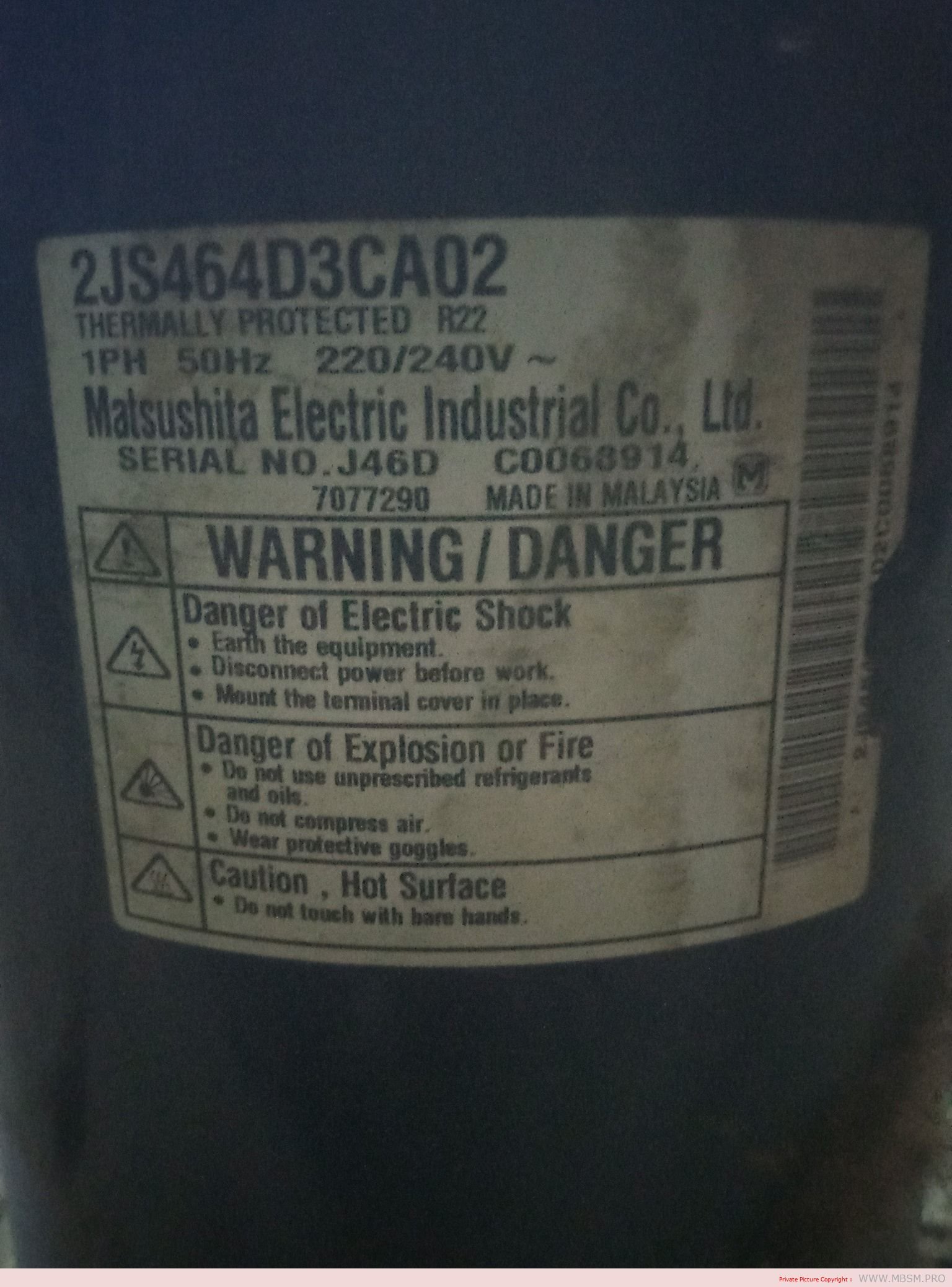 Compressor Matsushita 5416A20016F, 3 x 185, 3-phase. Kompressor Matsushita 5416A20030E, 48000 BTU, R-22