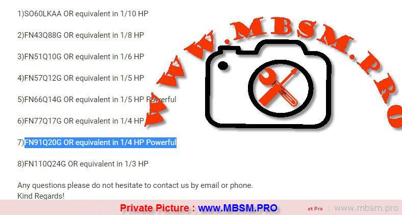 7)FN91Q20G OR equivalent in 1/4 HP Powerful