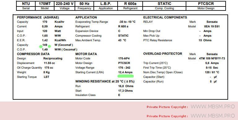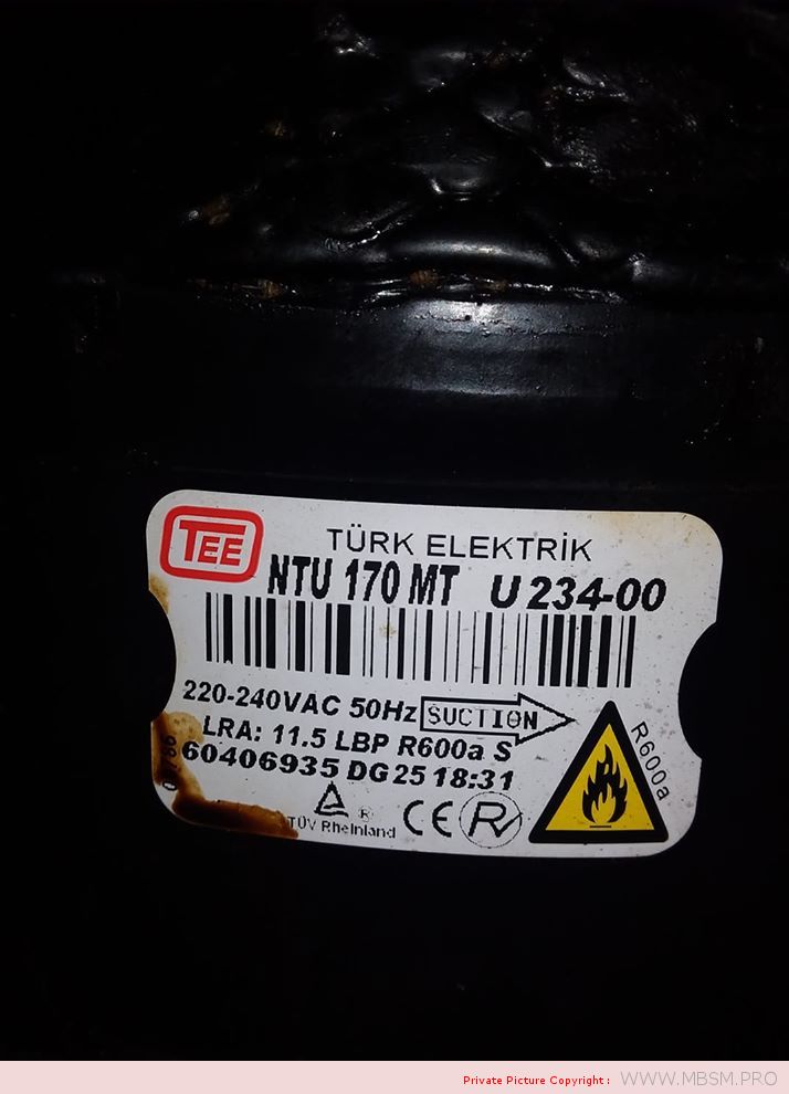 TEE TURK ELECTRIK MTS 170MT S222-10 208-220VAC 50HZ SUCTION LRA:12.2 LBP R600 AS 58619657 CF 2010:48