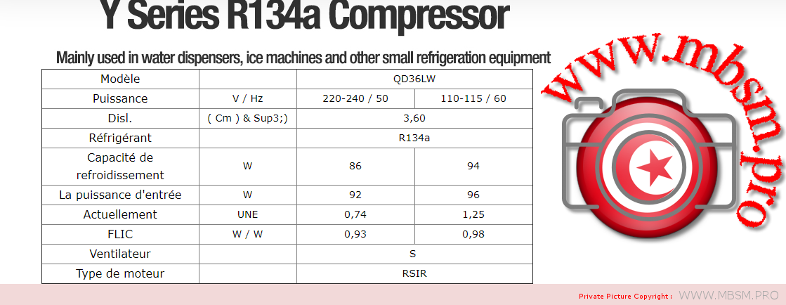 Série QD utilisée comme réfrigérants R134a, principalement pour boire, petits réfrigérateurs et autres petits
