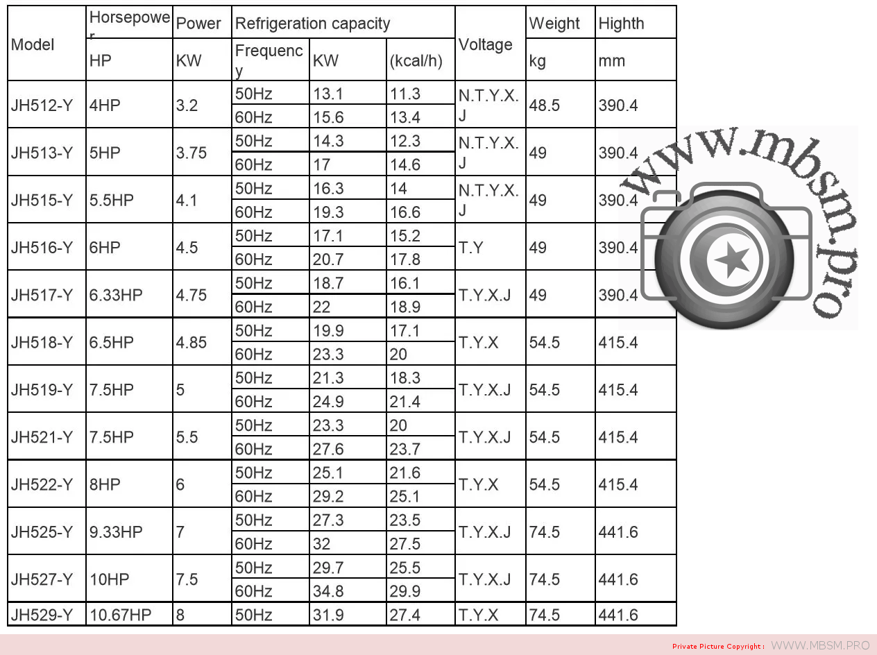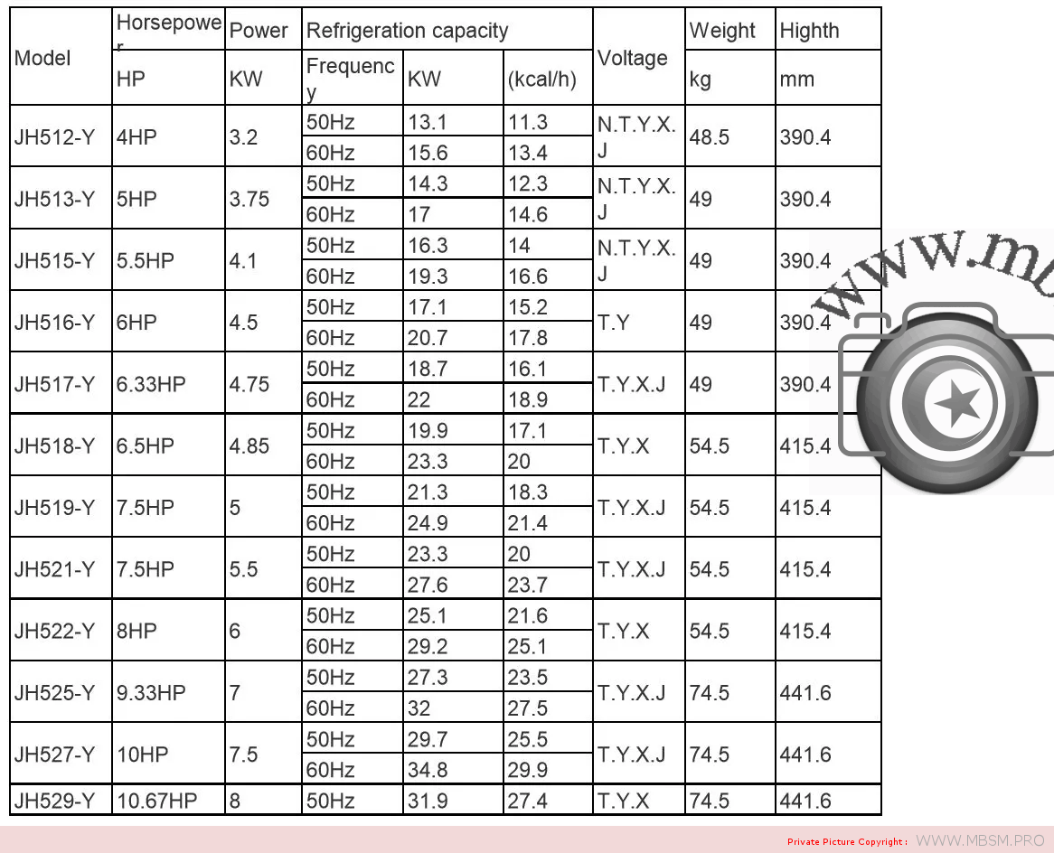 Mitsubishi Refrigeration Compressor JH527YEB 10HP
