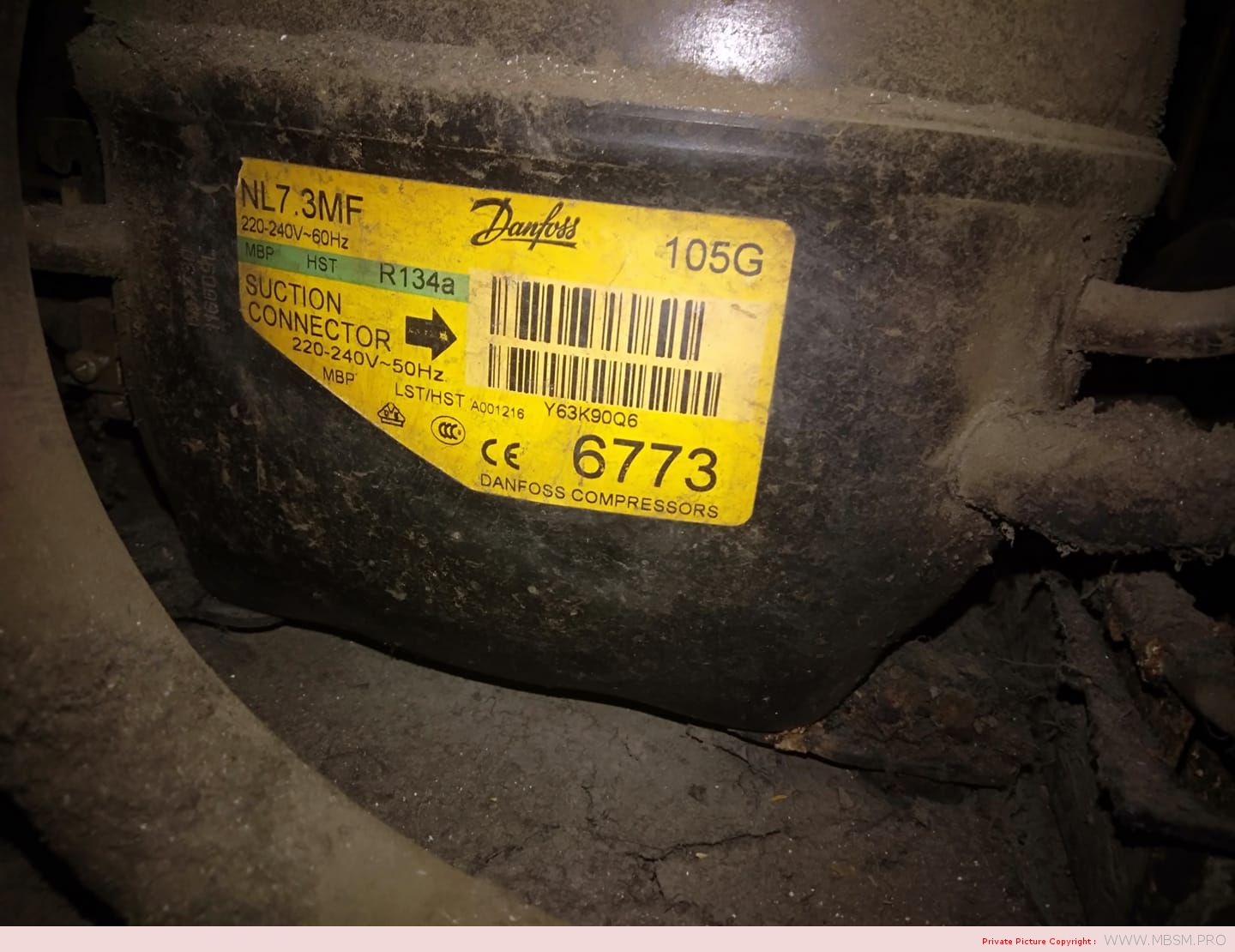 mbsm.pro, COMPRESSEUR, DANFOSS, SECOP, NL7.3MF, 105G6772 195B0370, 105G, 6773, R134a, 1/5 Hp++big, cylindrée 7.27 cc, displacement 7.27 cc, MBP