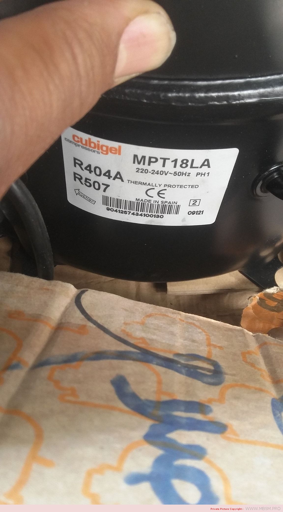 Caractéristiques du moteur du compresseur Cubigel MPT18LA:
