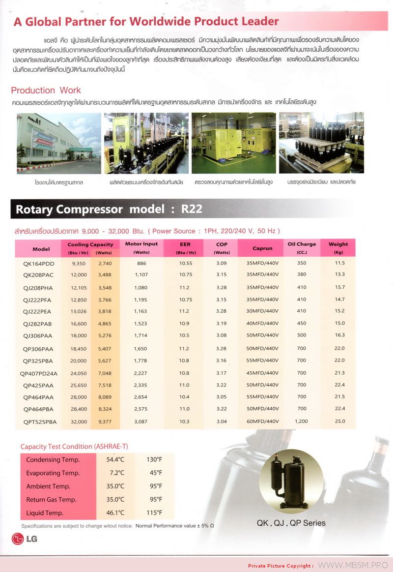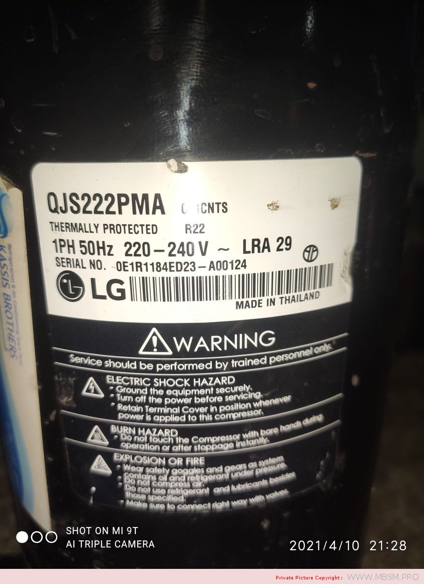 Product details LG rotary compressor model QJS222PMA size 12700BTU (5.6Amps, EER = 10.7)