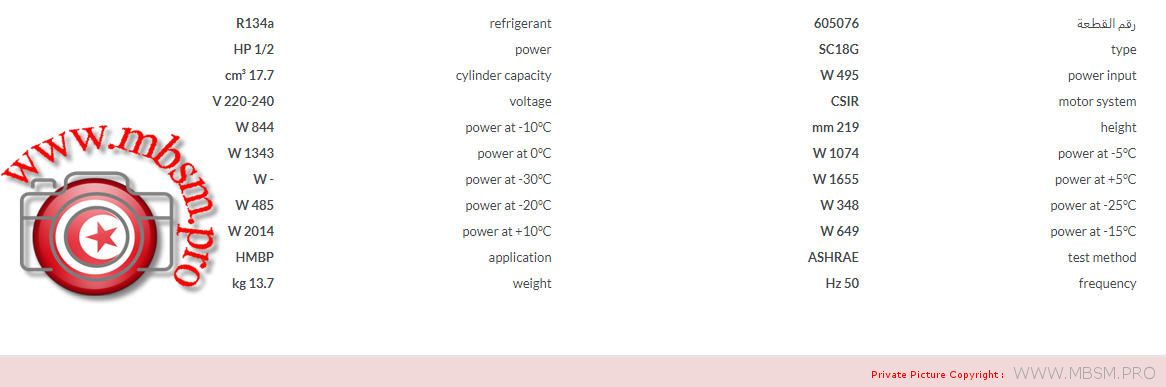 | Résistance de l’enroulement auxiliaire (enroulement de démarrage) pour compresseurs monophasés [ohm] | 14.1 Ohm |
