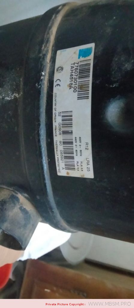 Mbsm.pro, Compressor, Tecumseh, TAH4518A, 1.5 Hp, HBp, R12, 440V 3~ 60Hz 400V 3~ 50Hz, 1684 W, 14048 btu