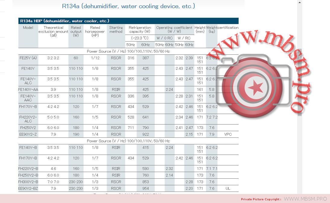 | R134a HBP (dehumidifier, water cooler, etc.) | |||||||||||||