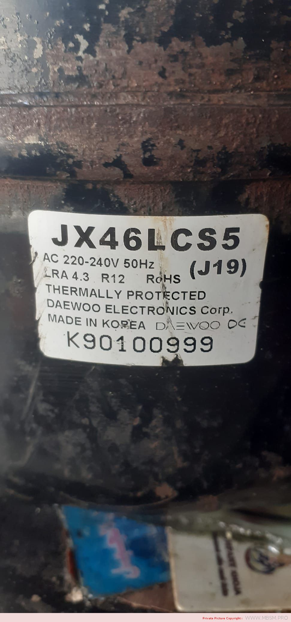 Mbsm.pro,DAEWOO COMPRESSOR ,FOR REFRIGERATOR , 220/240 V , R12, jx46lcs5, 1/6 Hp, 127 w, 109 kcal/h, 433 byu/h, lbp, Jx58lhs5-k, 1/5 Hp, R134A
