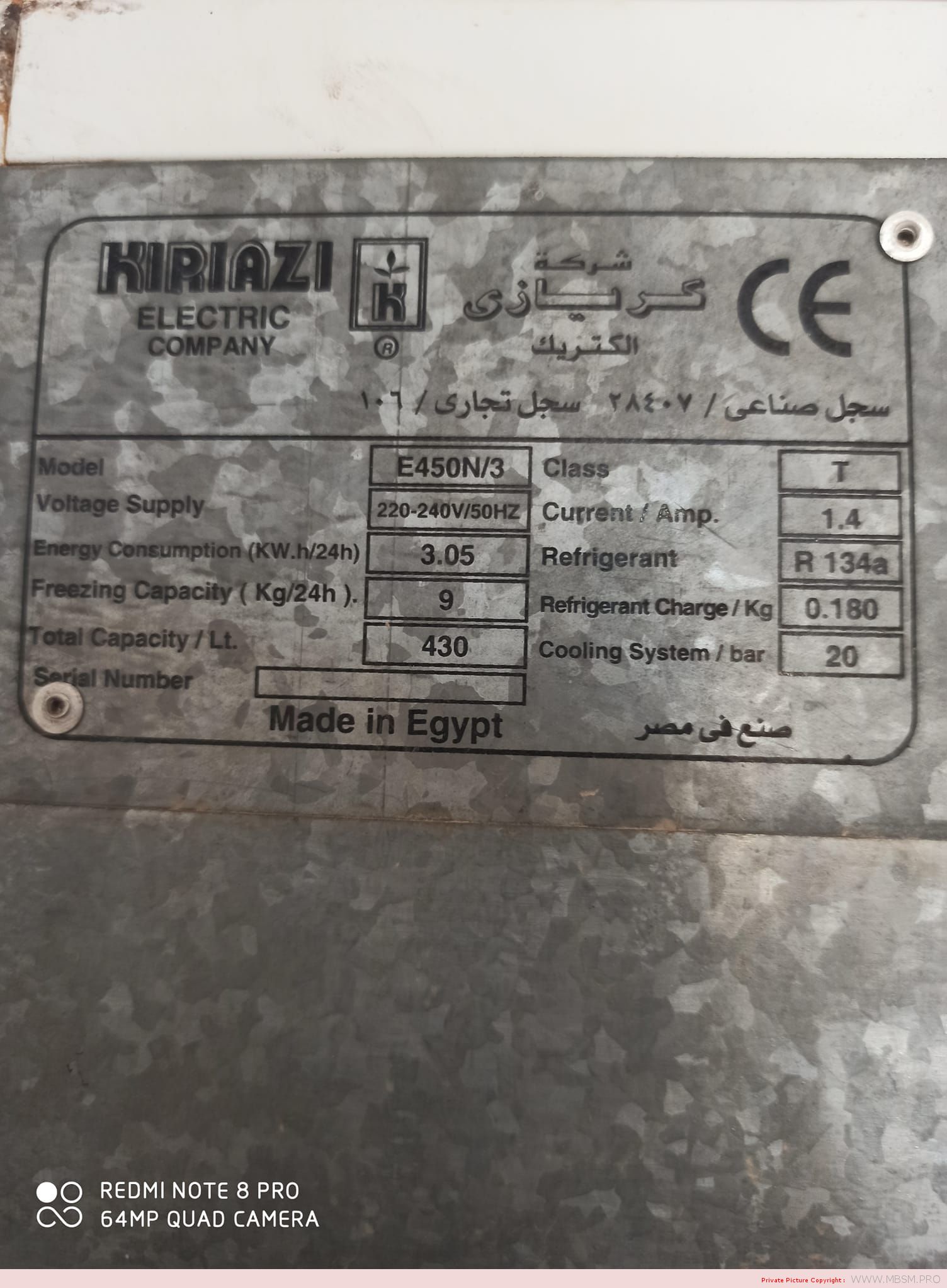 Mbsm.pro, KIRIAZI, REFRIGERATOR, 16 FEET, NO FROST, E450N, Compressor, 1/4 hp, R134a, 180 g