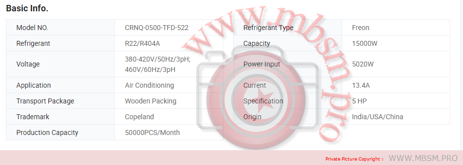 CRNQ-0500-TFD-522 Copeland Reciprocating Hermetic Compressor for Air Conditioning