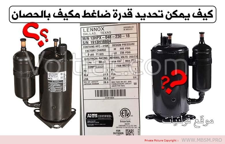 وفي الغالب قد تجد هذه الوحدات مكتوبة على جسم الوحدة الخارجية أو على الضاغط نفسه، وبإيجادنا قيمة وحدة من هذه الوحدات، يمكننا معرفة قدرة الضاغط بالحصان.