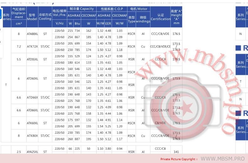 1) USA REFRIGERATOR COMPRESSOR 『ANA90K』 ● NAME: USA REFRIGERATOR COMPRESSOR 『ANA90K』 ● COMPRESSOR MODEL: ANA90K ● POWER: 1/3 ● PHASE: 1 PH ● COMPRESSOR GAS: R134A ● CAPACITY: 250W 2) USA REFRIGERATOR COMPRESSOR 『ATA80X 』 ● NAME: USA REFRIGERATOR COMPRESSOR 『ATA80X』 ● COMPRESSOR MODEL: ATA80X ● HORSE POWER: 1/4 ● PHASE: 1 PH ● GAS COMPRESSOR: R134A ● CAPACITY: 230W 3) USA REFRIGERATOR COMPRESSOR 『ATD66XL』 ● NAME: USA REFRIGERATOR COMPRESSOR 『ATD66XL』 ● COMPRESSOR MODEL: ATD66XL ● POWER: 1/5 ● PHASE: 1 PH ● COMPRESSOR GAS: R134A ● CAPACITY: 190 W ATD55XL ● POWER: 1/6 ● PHASE: 1 PH ● COMPRESSOR GAS: R134A ● CAPACITY : 155W