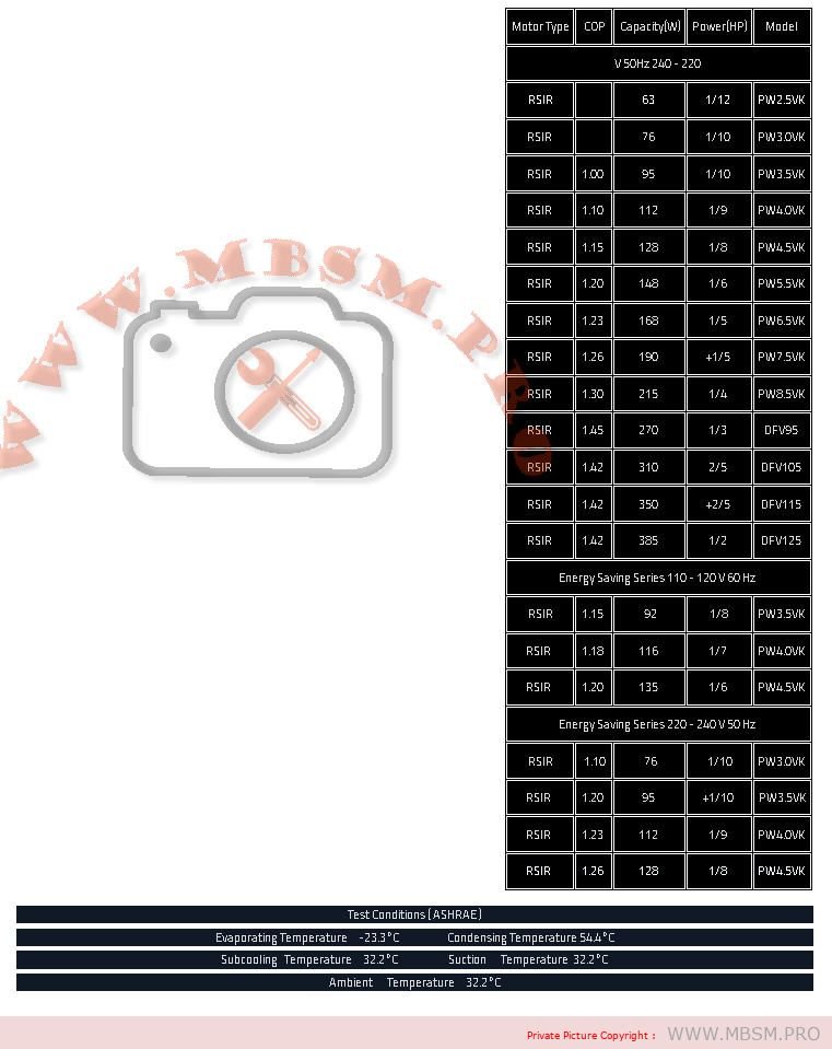 Evaporating Temperature -23.3°C Condensing Temperature 54.4°C