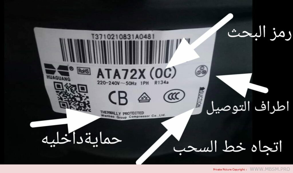 وهذا الرمز مهم بحيث يعلمك أن هذا الضاغط يحتوي علي حماية داخليه فإذا وجدته فاصل لا تحكم عليه بالتلف قبل تيده فبما ين فاصل للحماية