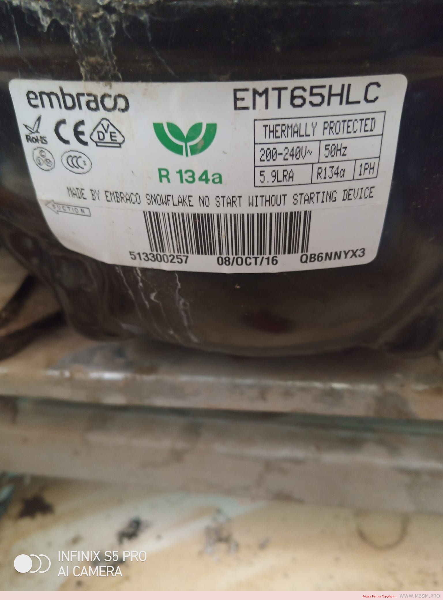 Compressor Refrigerant R134a EMT65HLR 220-240V 50Hz 1PH Embraco